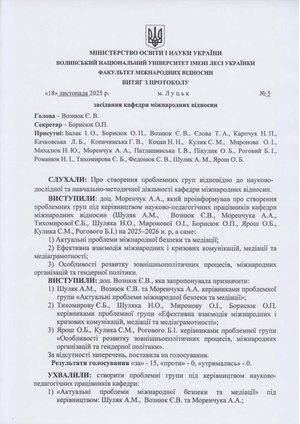 Витяг кафедри міжнародних відносин про створення проблемних груп]<br> | |||