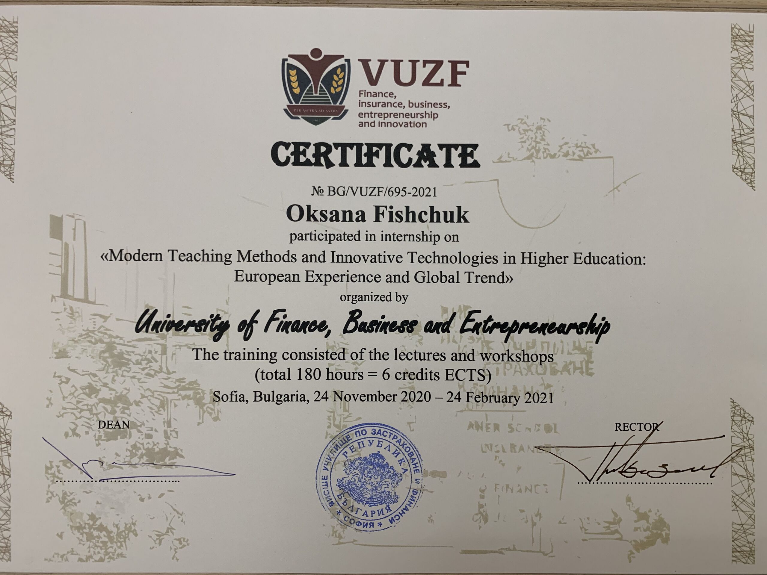Участь у міжнародному стажуванні з інноваційних методів викладання у вищій освіті