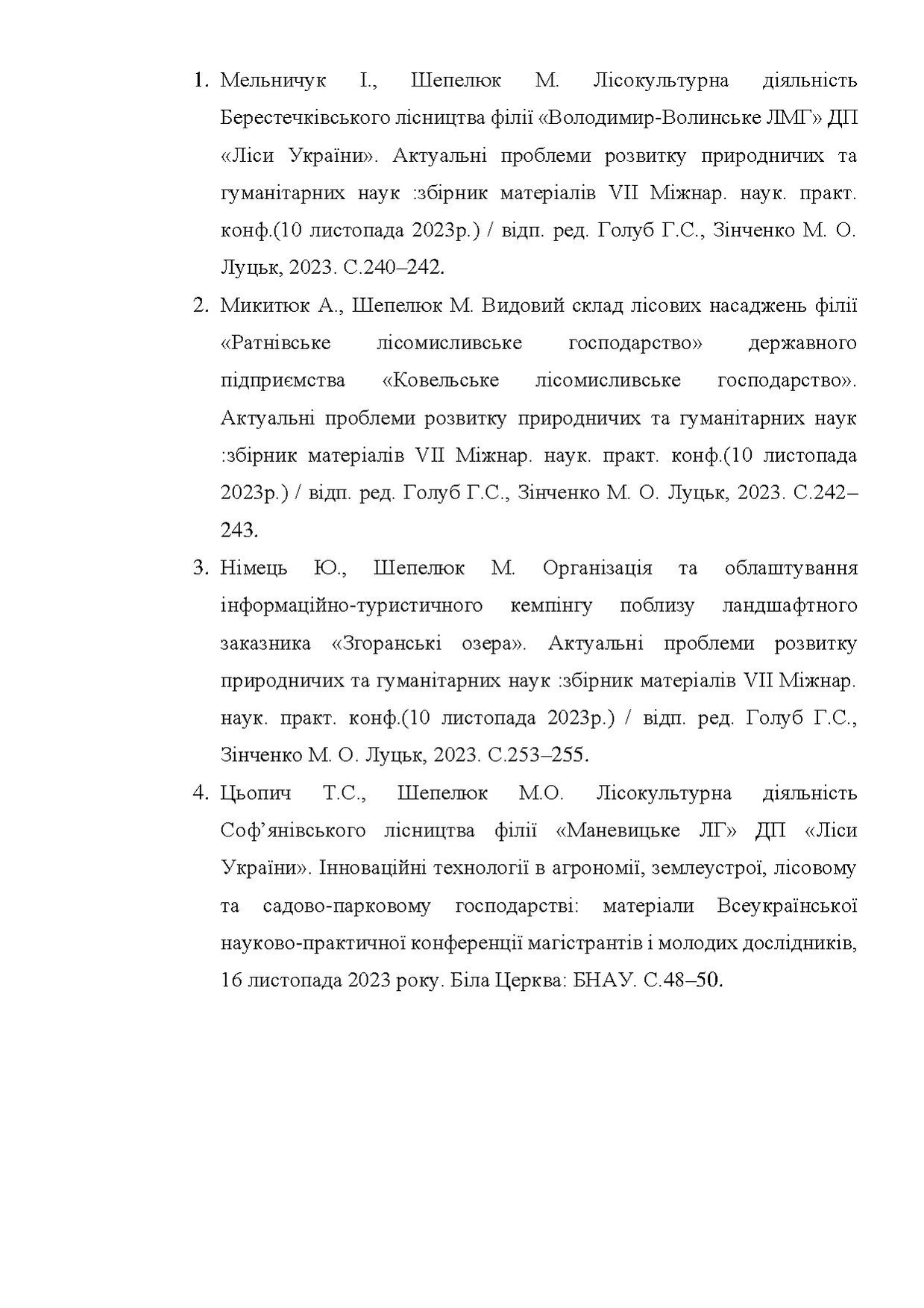 У 2023 році учасники проблемної групи активно брали участь у заходах, організованих відділом екології Луцької міської ради. Завдяки співпраці відбулося створення ботанічного куточка "Лісова феєрія" на території ЗДО №22. Проект озеленення розробляли студенти Софія Дикун та Вікторія Якубчик, разом з керівником проблемної групи Марією Олександрівною Шепелюк. Учасники проблемної групи мають і наукові досягнення - активно публікують результати своїх досліджень та беруть участь у конкурсах наукових робіт.