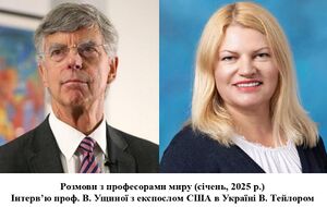 - Інтерв'ю професора В. Ущиної з послом Вільямом Тейлором на міжнародному форумі "Професори за мир"