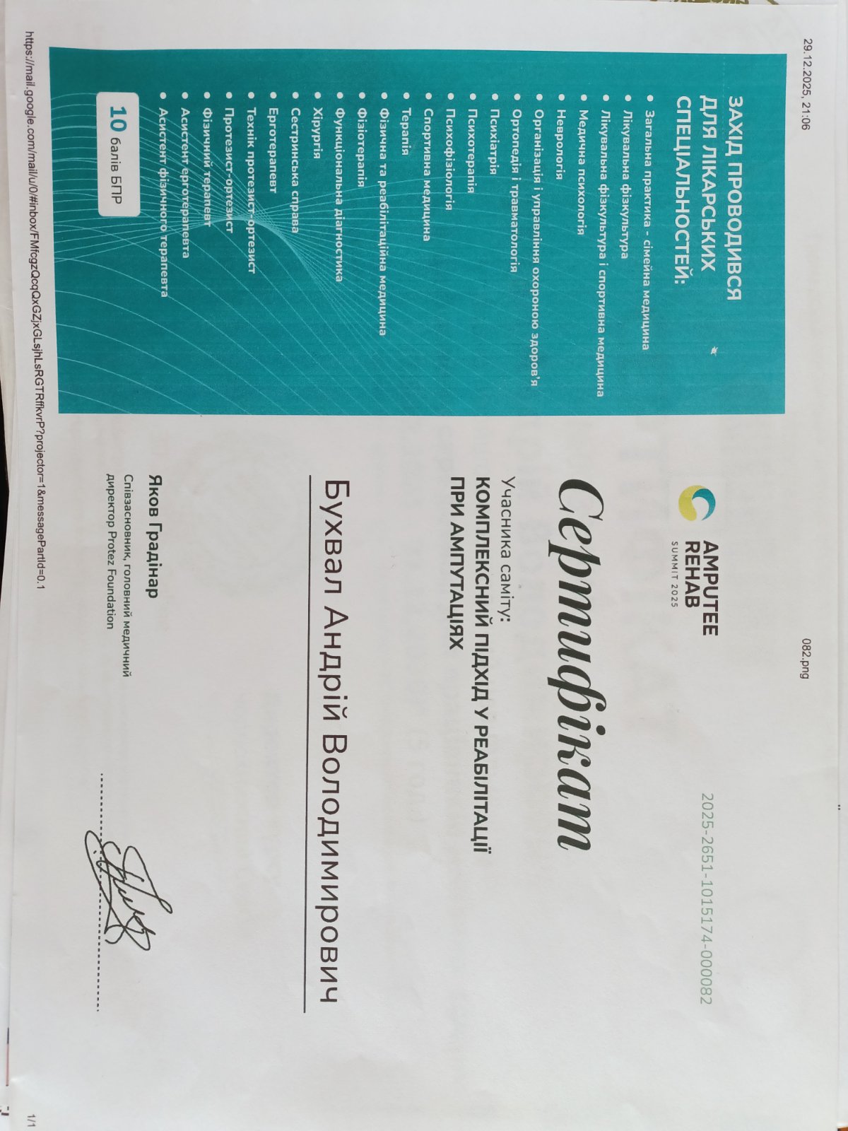 Жовтень 2025 р – Саміт: Комплексний підхід у реабілітації при ампутаціях (Сертифікат)