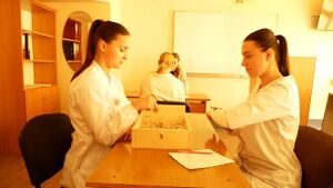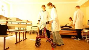 Auditorium 106 is equipped as a patient simulation ward. Future physical therapists and occupational therapists have the opportunity to practice skills related to providing rehabilitation care to patients in the acute and post-acute periods. Students learn to use an automatic and mechanical lift to move the patient for further use in practical activities. The classroom has a functional bed that allows training in the skills of getting up and sitting of patients of various nosologies using a specialized ladder and handles. Assistive devices are also available. The classroom is multifunctional, here you can combine both practical training and theoretical training, equipped with multimedia equipment and a video camera. Available tools for assessing a geriatric patient. Used as a station for conducting OSK(P)I.