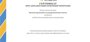Акредитовано освітньо-наукову програму «Біологія організмів та надорганізмових систем» зі спеціальності 091 Біологія