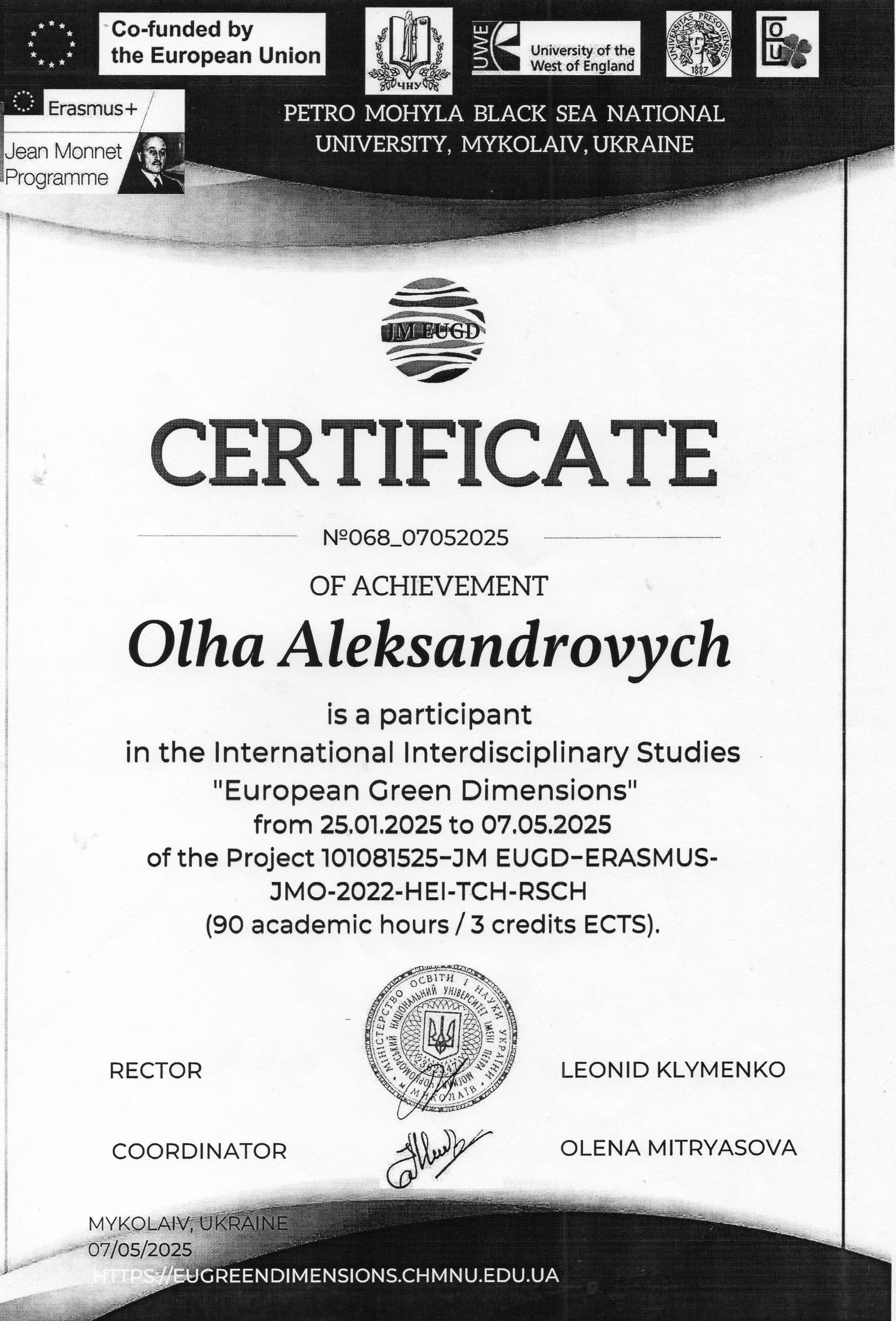 - Александрович Ольга Вадимівна (Гідр-42): Заява Розпорядження Протокол Сертифікат