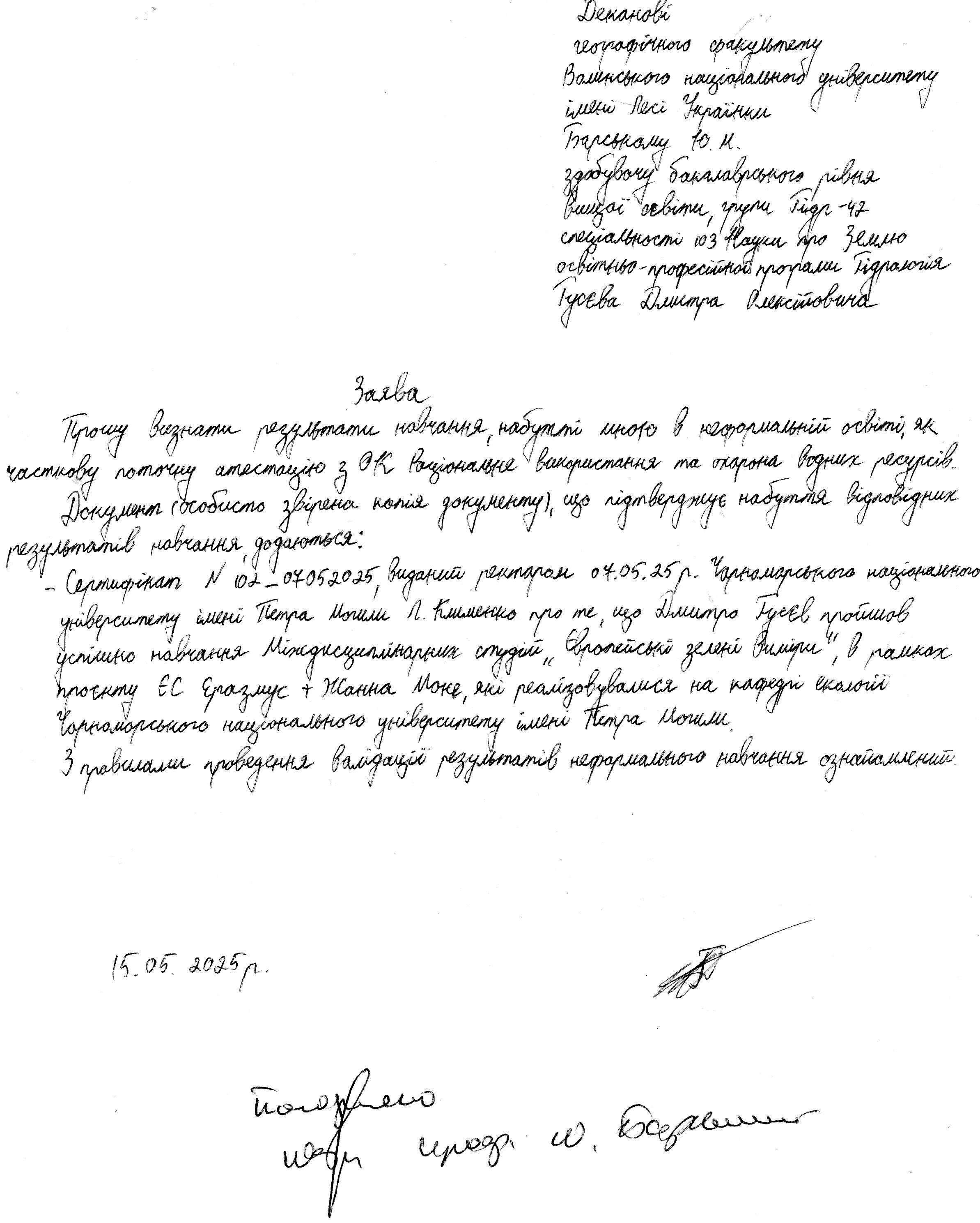 - Гусєв Дмитро Олексійович (Гідр-42): Заява Розпорядження Протокол Сертифікат