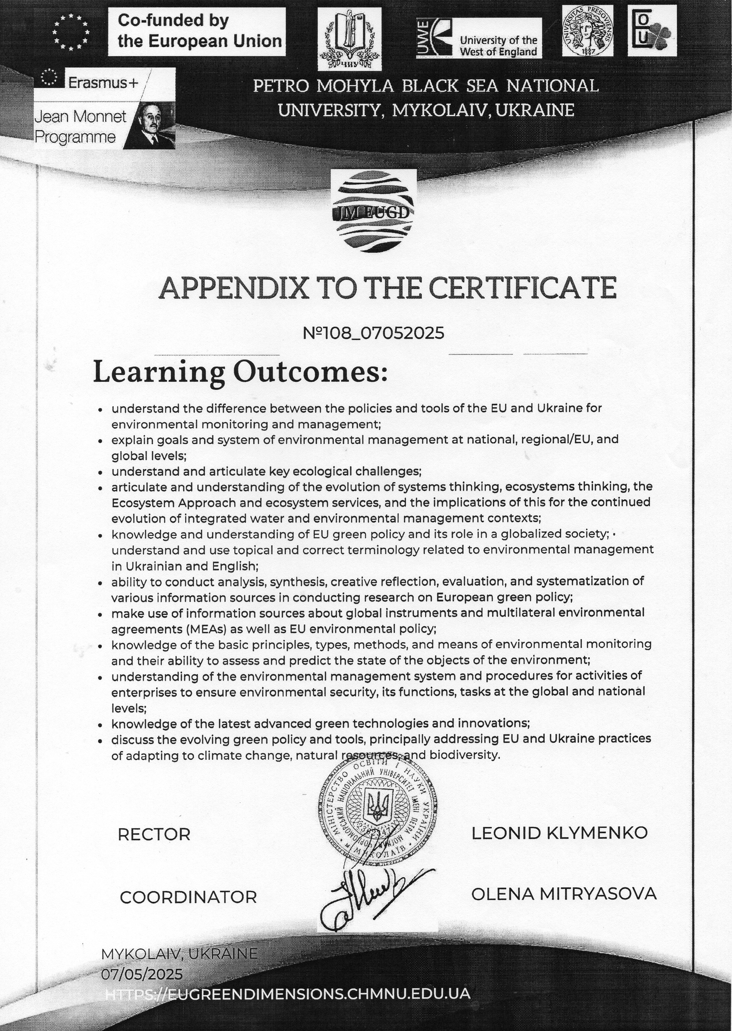 - Кушнірук Вікторія Петрівна (Гідр-54М): Заява Розпорядження Протокол Сертифікат