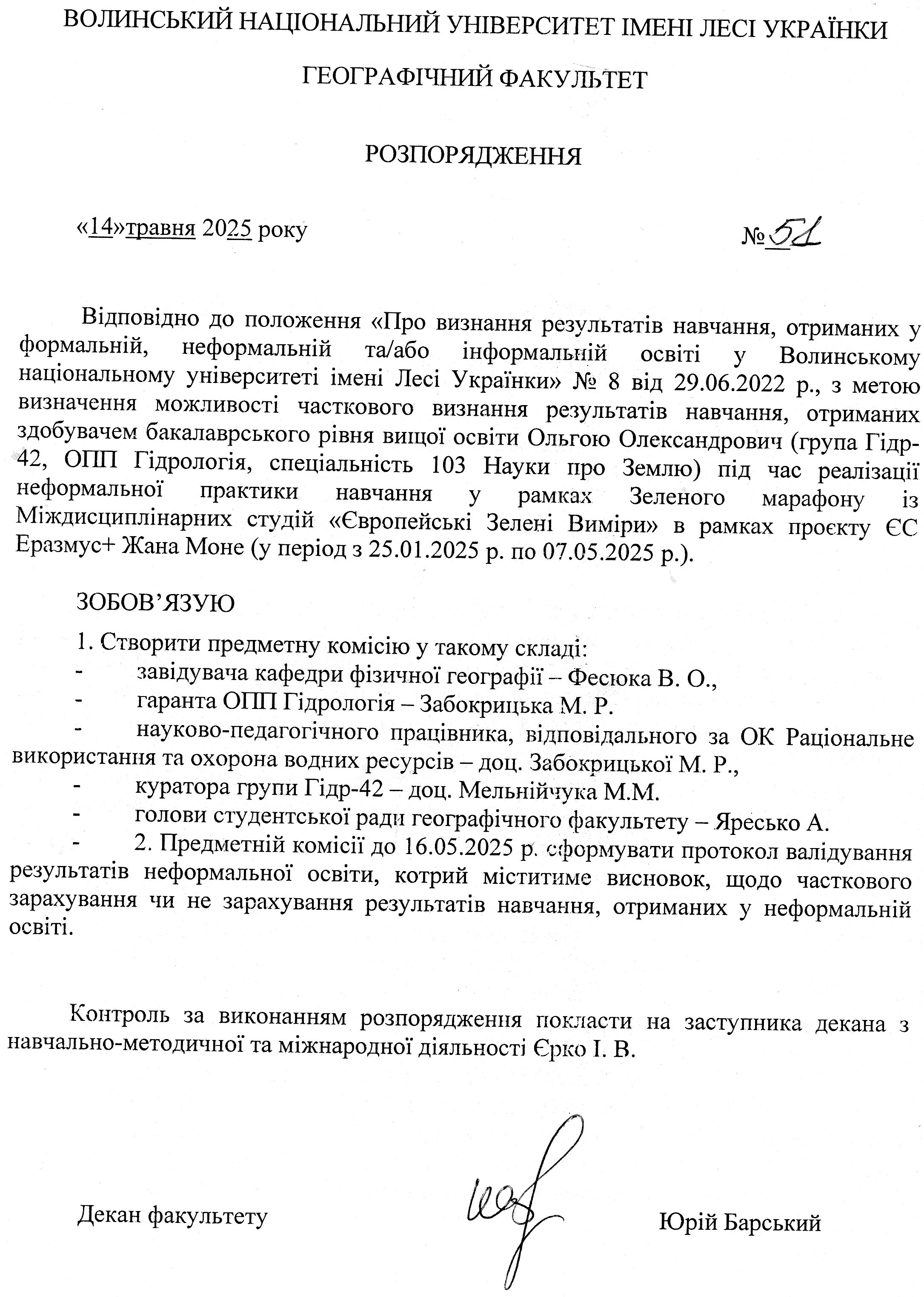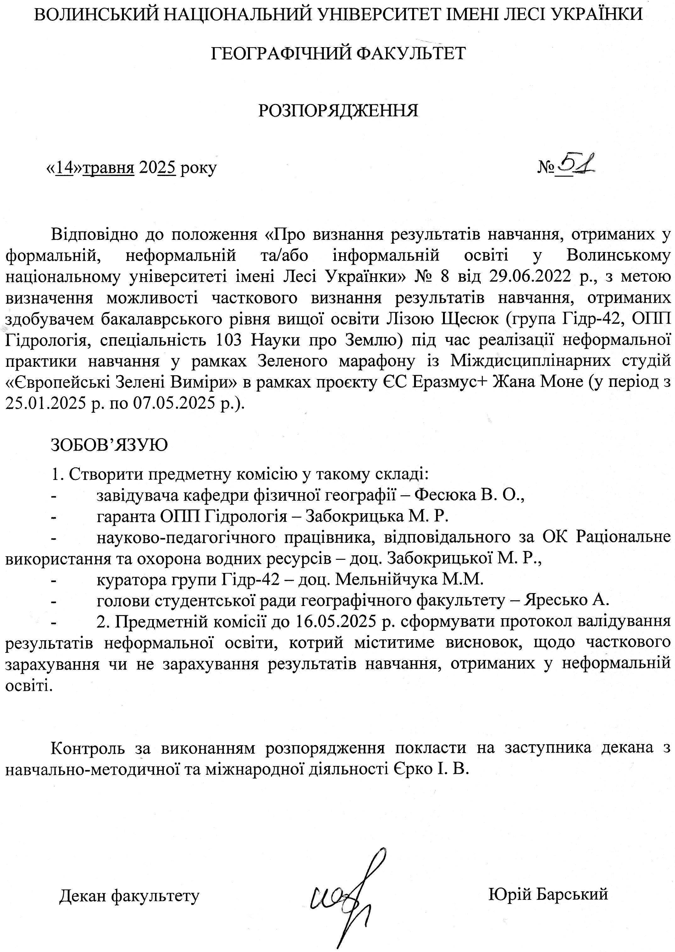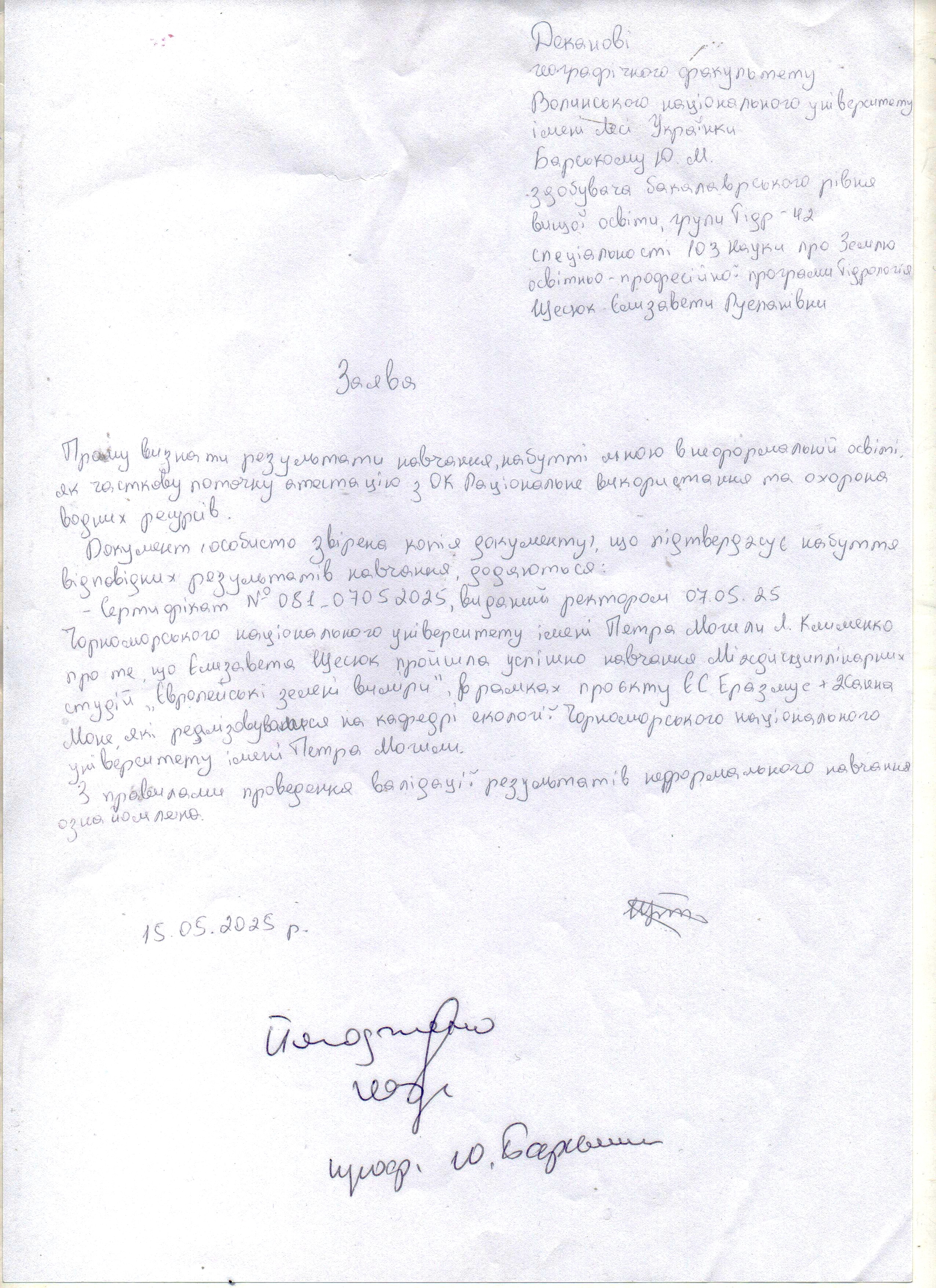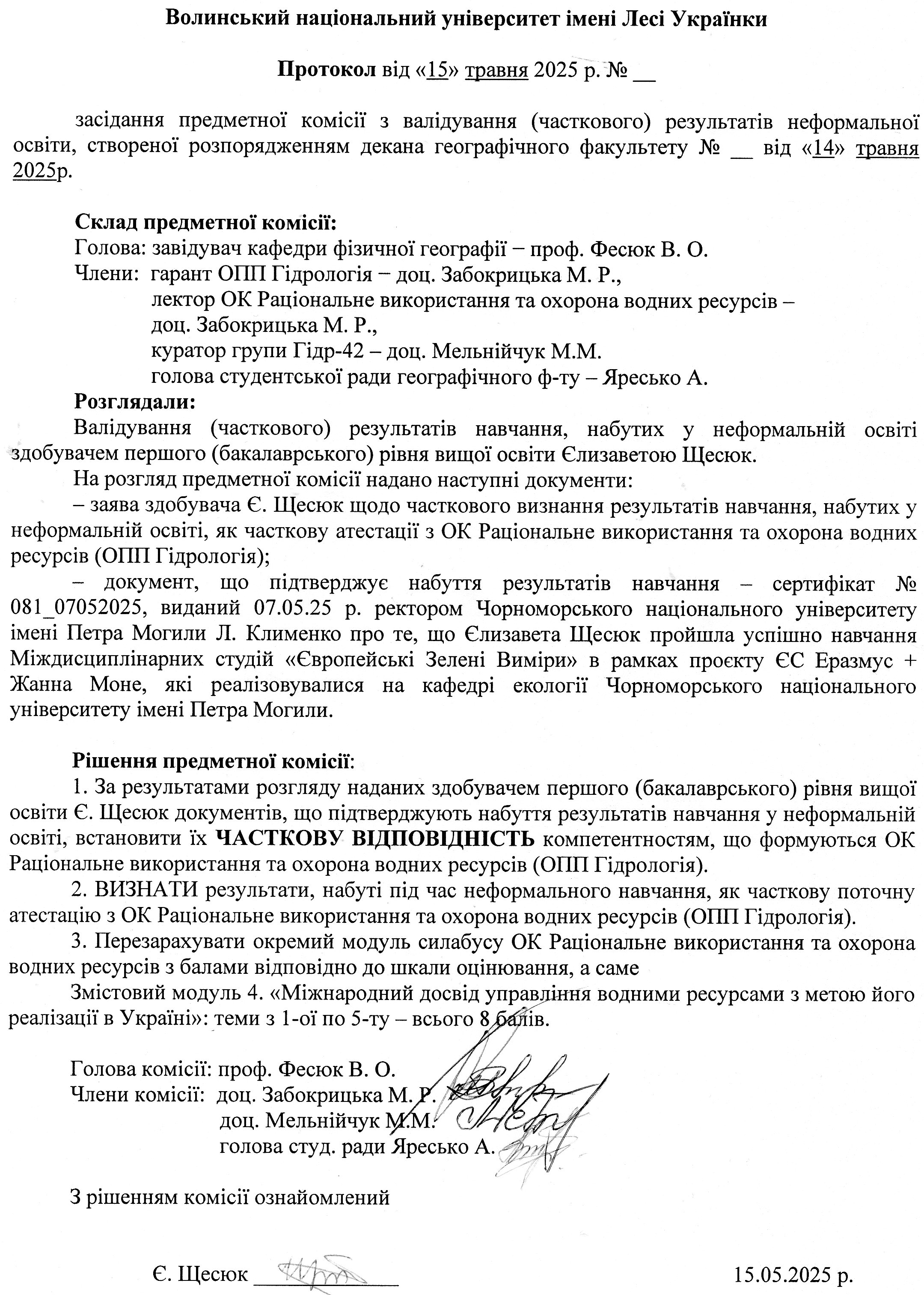 - Щесюк Єлизавета Русланівна (Гідр-42): Заява Розпорядження Протокол