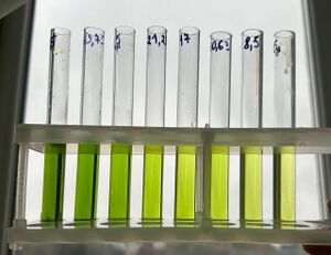 - Створити кольорову шкалу для визначення концентрації хлорофілів, користуючись таблицею розведення.