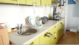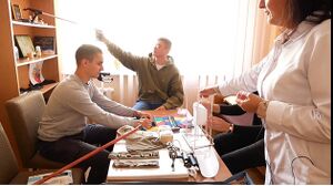 Навчальна аудиторія «Симуляційна ерготерапевтична квартира» призначена для показу здобувачам, як можна адаптувати навколишнє середовище під потреби пацієнта чим покращити його рівень життя. Кабінет складається з ванної кімнати, яка оснащена кріслами для душа та для туалету; кріслом електричним для піднімання/опускання; дошка для пересідання; адаптованими пристосуваннями для полегшення прийняття туалетно-банних процедур. Обладнання прихожої кімнати допомагає опанувати навички одягання/роздягання (захват для підбирання предметів; допоміжні засоби для одягання та діставання предметів; гачок для застібання ґудзиків адаптаційний; допоміжний засіб для вдягання компресійного трикотажу; допоміжні засоби для переміщення. Симуляційна кухня облаштована всім необхідним інвентарем, який полегшує догляд за пацієнтом та стимулює його незалежність у побуті та самообслуговуванні.