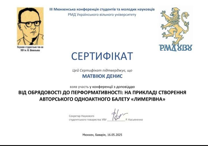 | 09:21, 11 листопада 2025 | СЕРТИФІКАТ МІГНА М..pdf (файл) | 821 КБ | 1 | ||